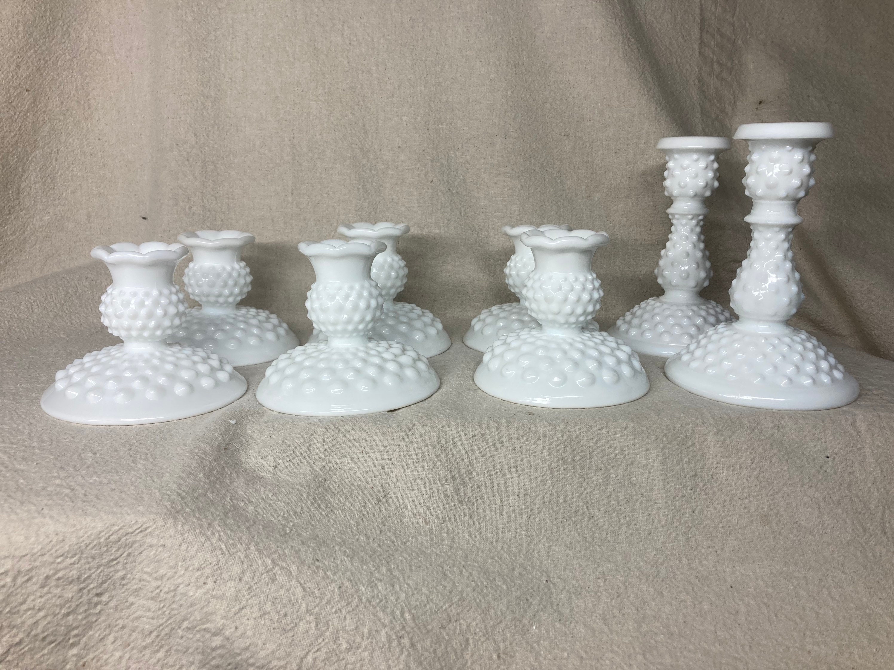 Hobnail Milk Glass Candle Holders Etsy